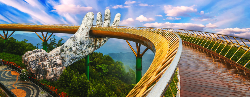 Enjoy a walk across the famous Golden Bridge and admire the panoramic view over the mountains and lush trees. Have local buffet lunch at Ba Na Hills. After lunch, enjoy free time to join games at Fantasy Park – the third-biggest indoor games zone in Vietnam – with a series of interesting games (4D–5D cinema, skiver, death race, dinosaur park, etc.).
