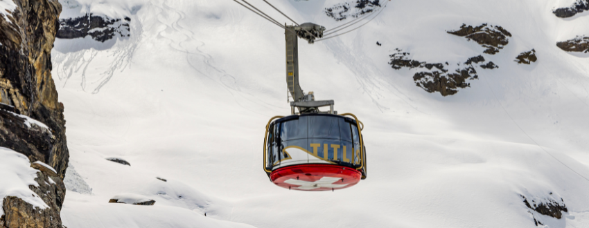 Mt. Titlis: rotating cable car, Ice Flyer, glacier park, snow tubing. Lucerne orientation: Chapel Bridge, Lion Monument, old town. Rhine Falls photo stop. Overnight in Central Switzerland.