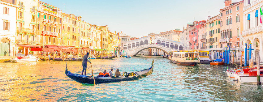 To Venice (City of Canals) by vaporetto to St. Mark's Square. Orientation: Basilica, Doge's Palace, Campanile, Bridge of Sighs. Gondola ride. Overnight in Padova/Bologna/Ferrara.